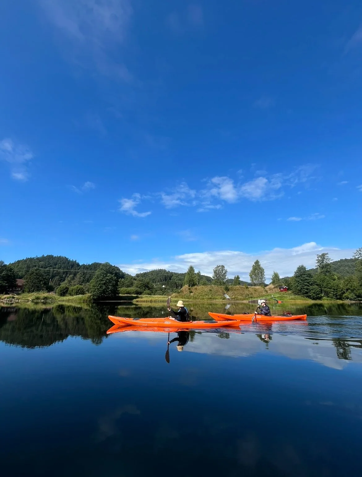 I Kristiansand leier vi primært ut kajakker på den lokale innsjøen Gillsvannet. Dette er en trygg og naturskjønn innsjø med lite vind, ingen strøm og ingen båttrafikk. Vannet er ofte varmt om sommeren, og du finner både strender, brygger og to små øyer som kan utforskes med kajakk. Her får du virkelig en rolig og vakker padleopplevelse i grønne omgivelser – og det passer perfekt for nybegynnere.